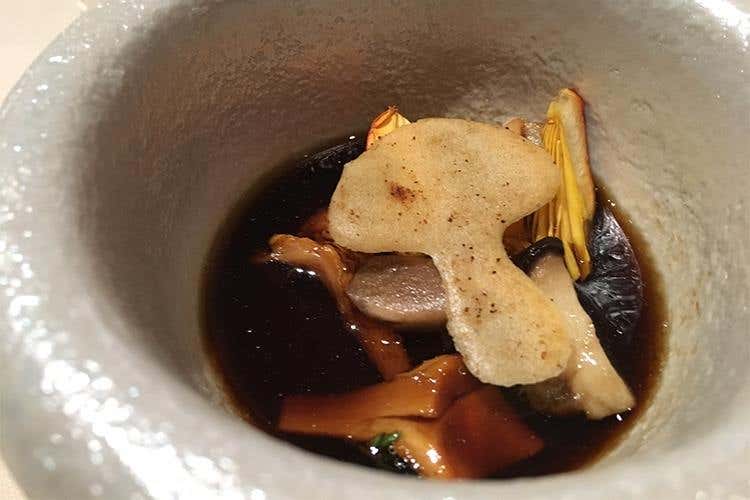 Vie di Romans, Malvasia Dis Cumieris 2010, dove l'armonia e la morbidezza era insuperabili. Seguiva un Flan di funghi selvatici con brodo, accompagnato dal