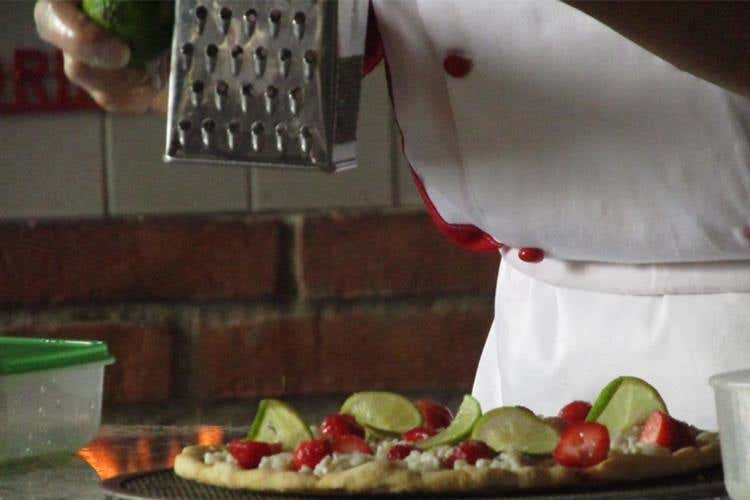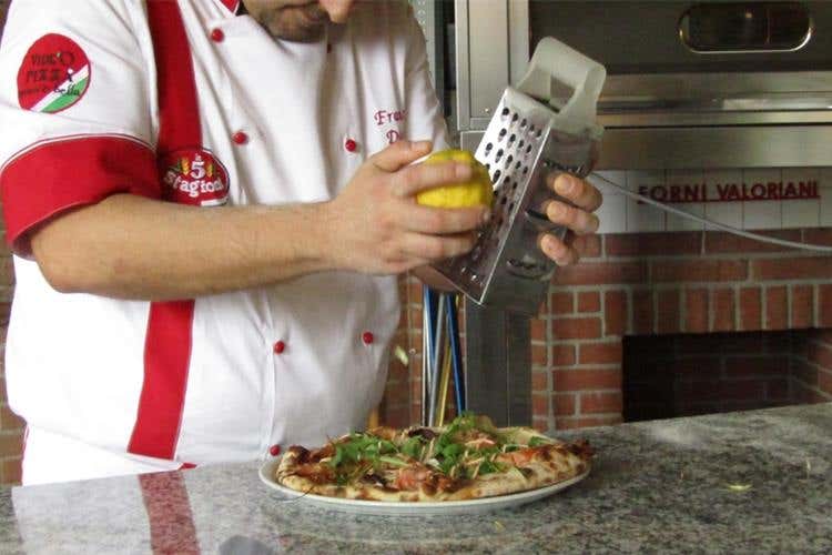 Topping, sia salati sia dolci, ricchi e creativi, con abbondanza di crostacei e ricotta. Presentazioni in diversi casi servite con calici di vino in abbinamento. A disposizione un set completo - con tanto di portapale - di attrezzature Gi.Metal, un forno a legna Valoriani e uno elettrico