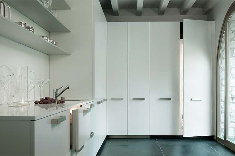 Gli elettrodomestici Sub-Zero e Wolf possono essere installati in maniere differenti dato che le cerniere non aggiungono spessore alla larghezza dell’apparecchio. Quando si apre la porta dell’elettrodomestico la cerniera prima viene in avanti e poi si apre. Le cerniere rimangono sempre all’interno della larghezza dell’apparecchio e non sporgono sui mobili adiacenti o sugli elettrodomestici installati a fianco. Il sistema integrato di cerniere dei prodotti New Generation è disponibile sui frigoriferi e sulle cantine vino Sub-Zero.