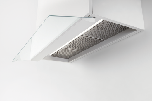 • Corpo cappa: materiale translucido (Hi-Macs); lato inferiore: bianco, sim. Ral 9003 matt.