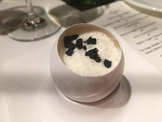 • Tè (fungo shiitake), grani tostati e pollo (accompagnato da un Ferrari Riserva Lunelli 2007 Trentodoc)