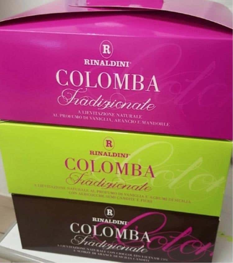 La Colomba tradizionale in casa Rinaldini è rigorosamente a lievitazione naturale, ma a dargli ancora più carattere sono gli aromi. Una prima variante al profumo di vaniglia, arancio e mandorle; si passa poi alla Colomba tradizionale al profumo di vaniglia e agrumi di Sicilia con albicocche semi candite e fichi, e per i più golosi: Colomba tradizionale a lievitazione naturale con cioccolato vietnamita e scorza di arance di Sicilia condite.