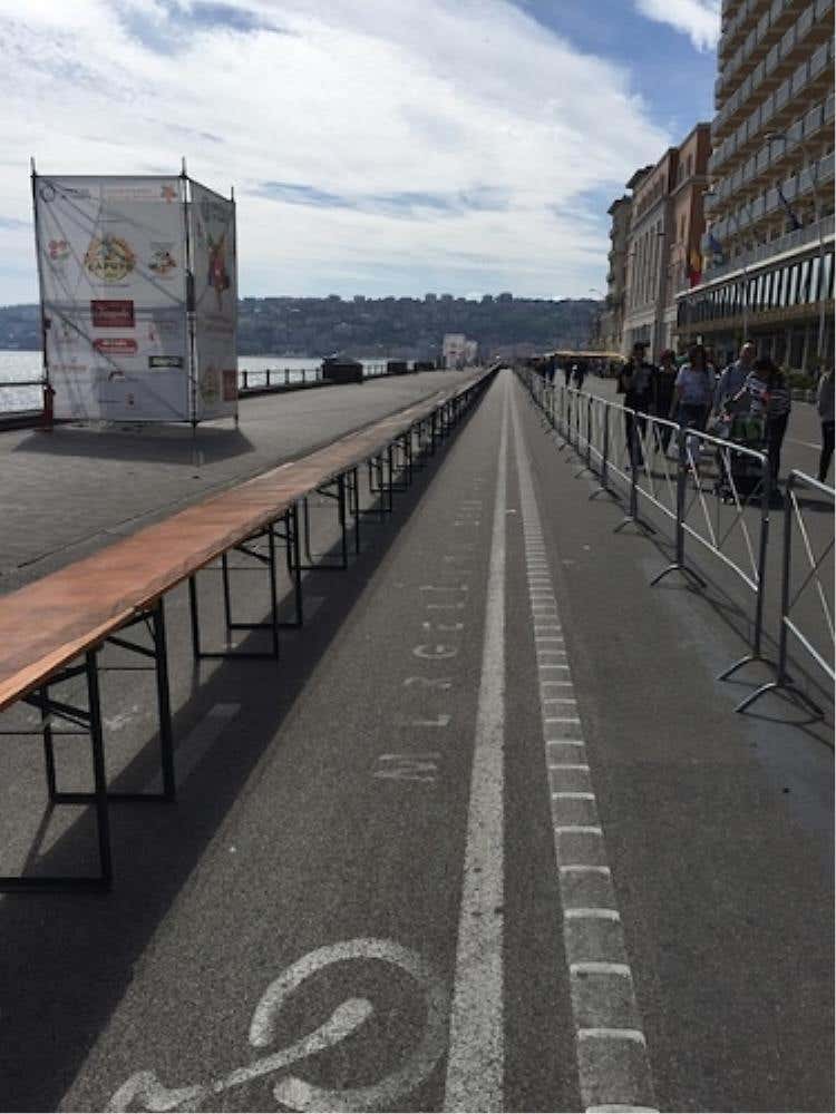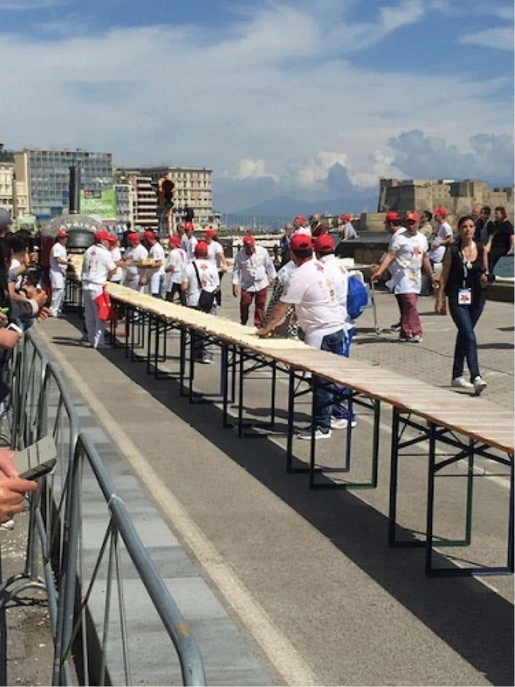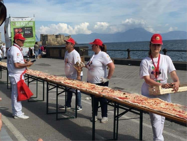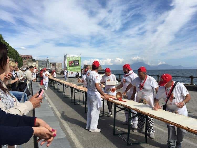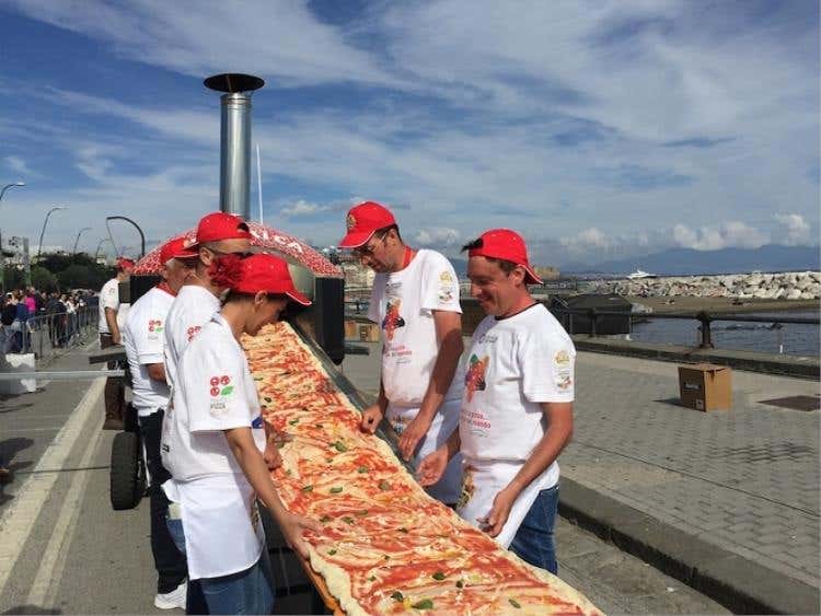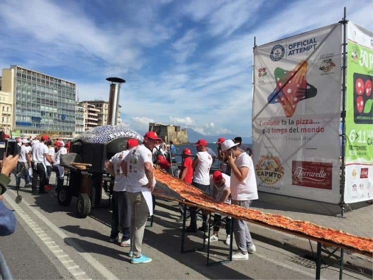 L'impresa è stata realizzata sul lungo mare Caracciolo a Napoli: i quasi 2 chilometri di pizza, preparati da oltre 250 pizzaioli in 6 ore e 11 minuti, entrano ufficialmente a far parte del Guinnes world record. Nel frattempo continua la raccolta firme per il riconoscimento della pizza come patrimonio Unesco