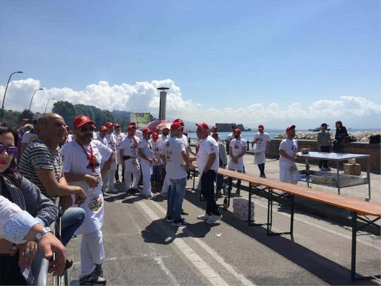 Al termine della performance, la pizza è stata offerta ai presenti e grazie al coordinamento dell’assessorato alle Politiche sociali del Comune di Napoli, è stata donata all’associazione Camper Onlus, che da più di 15 anni si occupa di offrire servizi per l’integrazione a persone senza fissa dimora, a Croce rossa italiana e all’associazione Chicchi di grano. In serata le associazioni, con il coordinamento del Centro Salvatore Buglione, si sono occupate di distribuire un chilometro della pizza del record, offrendo così un pasto caldo a chi ne avesse bisogno.