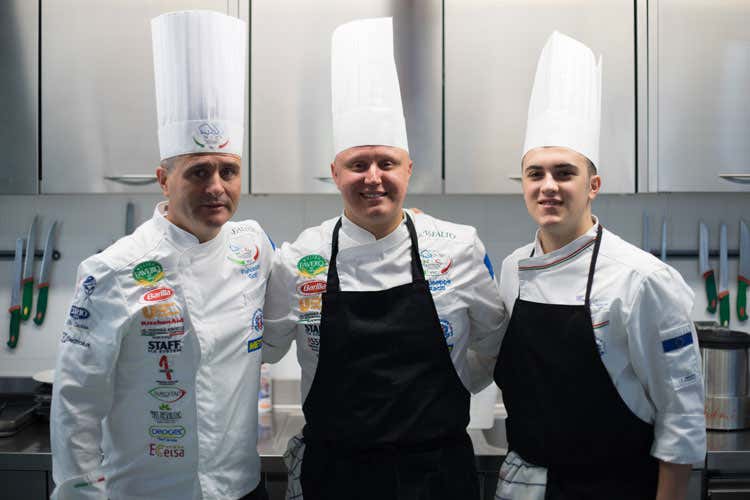 Francesco Gotti, Giuseppe Raciti e Marco Sciacca (Raciti si allena per il Bocuse d’Or In panchina l’esperienza di Gotti)