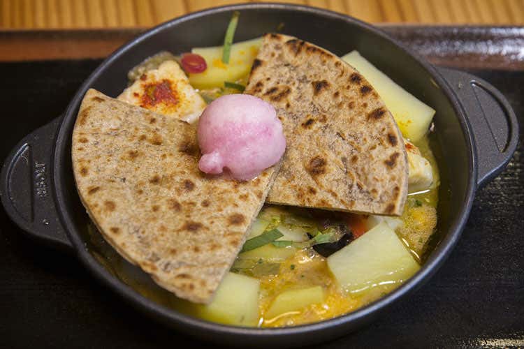 Come detto sopra il menu è stato un percorso attraverso la visione del cuoco e l’ispirazione vichinga: le entreè hanno spaziato da Ostrica alla griglia mangia e bevi, Stoccafisso alla mugnaia con salsa di friggitelli, quinoa e spinaci, alla Testa di black cod verze e topinambur sino al King crab con pastinaca fermentata e pesto di alghe.