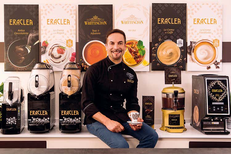 Un professionista di successo che ha trasformato il locale in una meta d’obbligo, non solo per la pasticceria, ma anche per i cocktail e la caffetteria, settore, questo, dove Renato (attualmente candidato nel sondaggio Personaggio dell'anno - CLICCA QUI per votare) ha trovato nella gamma Eraclea - creme fredde, cioccolate, caffè al ginseng, orzo - e nei tè Whittington - disponibili sia nella versione calda che fredda - degli alleati formidabili.