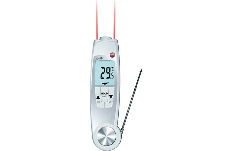 Testo 104-IR, è particolarmente pratico e veloce perché in un unico strumento sono integrati due diversi metodi di misura: sia la precisa misura a penetrazione, sia la veloce misura IR.