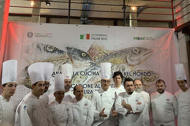 Alcuni giovani cuochi che hanno omaggiato i prodotti del Belpaese (Settimana della Cucina italiana Bellanova: Lotta all'Italian sounding)