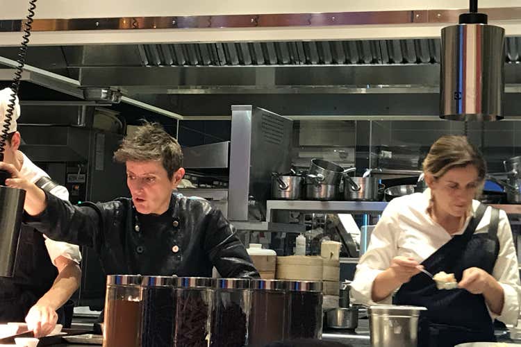 Adeline Grattard a Milano ha proposto un menu che ha visto sfilare Orata reale al sale, insalata di zucca arrostita (Vermentino Solosole 2018, Poggio Al Tesoro), Gamberi rossi di Mazara del Vallo, sweet & sour e agrumi (Langhe Sauvignon Rovella 2017, Parusso), Polpette di vitello a la Chinoise, salsa fuyu e champignon (Pinot Nero Mimuet 2016, Alois Lageder), Bao al Gorgonzola e amarena (Primitivo di Manduria Licurti 2017, Masseria Trullo di Pezza), Crema di sesamo nero al cacao, mousse alla vaniglia e croccante al sesamo (Vendemmia tardiva Cristina 2016, Roeno).