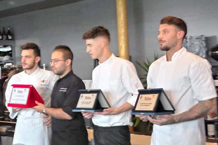 La sfida è continuata con la “domenica bergamasca”: polenta e coniglio in filetto di pancetta che aveva bisogno di molto più tempo per l'elaborazione. Infine, trionfo di sensi e gusto con “Panna e limone” di Valzelli. Un dolce che non smentisce la tradizione bresciana (Massari docet) formato da ben otto ingredienti, i principali: panna in una coppa di limoni del Garda, sfoglia ricomposta, liquirizia, cioccolato belga, passata di Lugana e olio del mondiale Comincioli. Solo 38% di grassi! Lungo e meticoloso il lavoro della giuria che ha deciso di assegnare il premio ex aequo Rozza/Valzelli. Sul gradino più in alto è però salito il dolce di Valzelli “per la creatività e la ricerca di fantasia” ben affiancato dall'originalità del Tortello di Rozza. Insomma, giovani che sicuramente diventeranno protagonisti della cucina italiana.