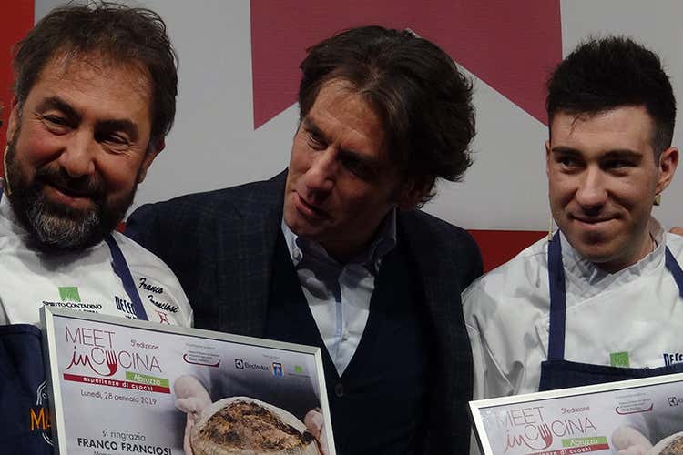Sul palco di Meet in Cucina Abruzzo, 5ª edizione, è a suo agio, è sicuro della sua cucina, soprattutto perché è con questa che comunica se stesso e la sua filosofia ai fornelli: «Il piatto di oggi è il racconto dei nostri tempi. E della tradizione».