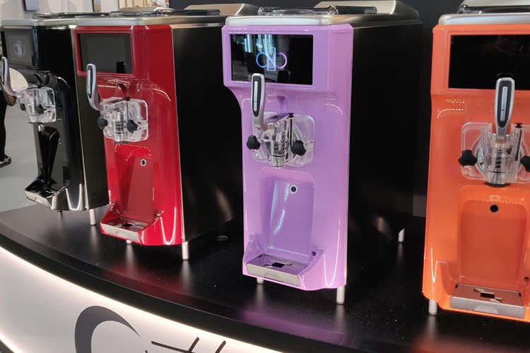 Elena Buglione - è una nuova linea di macchine che parte da un nuovo approccio alla progettazione, una progettazione che definiamo consapevole perché è in grado di coniugare tutte le esigenze che il mercato ci chiede. Con una semplice impostazione questa macchina è in grado di produrre dal milk-shake all’hard ice-cream con una semplice impostazione. È una macchina che sa pensare e suggerire all’operatore quello che deve fare, passo dopo passo. Inoltre sa autogestirsi e suggerire piani di manutenzione e utilizzo con la certezza che nessun imprevisto possa avvenire nell’arco dei primi 5 anni. 18 chili all’ora è la capacità produttiva, è sempre connessa grazie alla quarta dimensione e quindi può essere gestita da remoto. È stata pensata perché possano essere semplificate tutte le operazioni che nella gestione ordinaria richiedono grande impegno all’operatore, dal lavaggio all’uso ordinario».