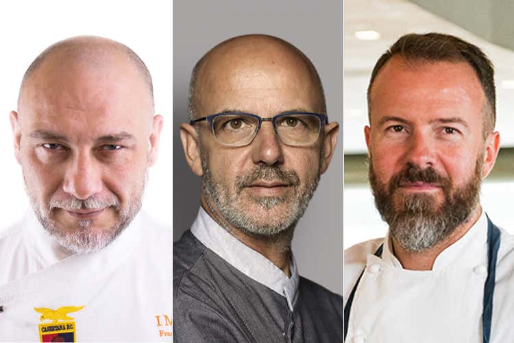 Il podio: da sinistra Francesco Martucci, Franco Pepe e Simone Padoan - La miglior pizzeria d'Italia e nel mondo? I Masanielli di Francesco Martucci