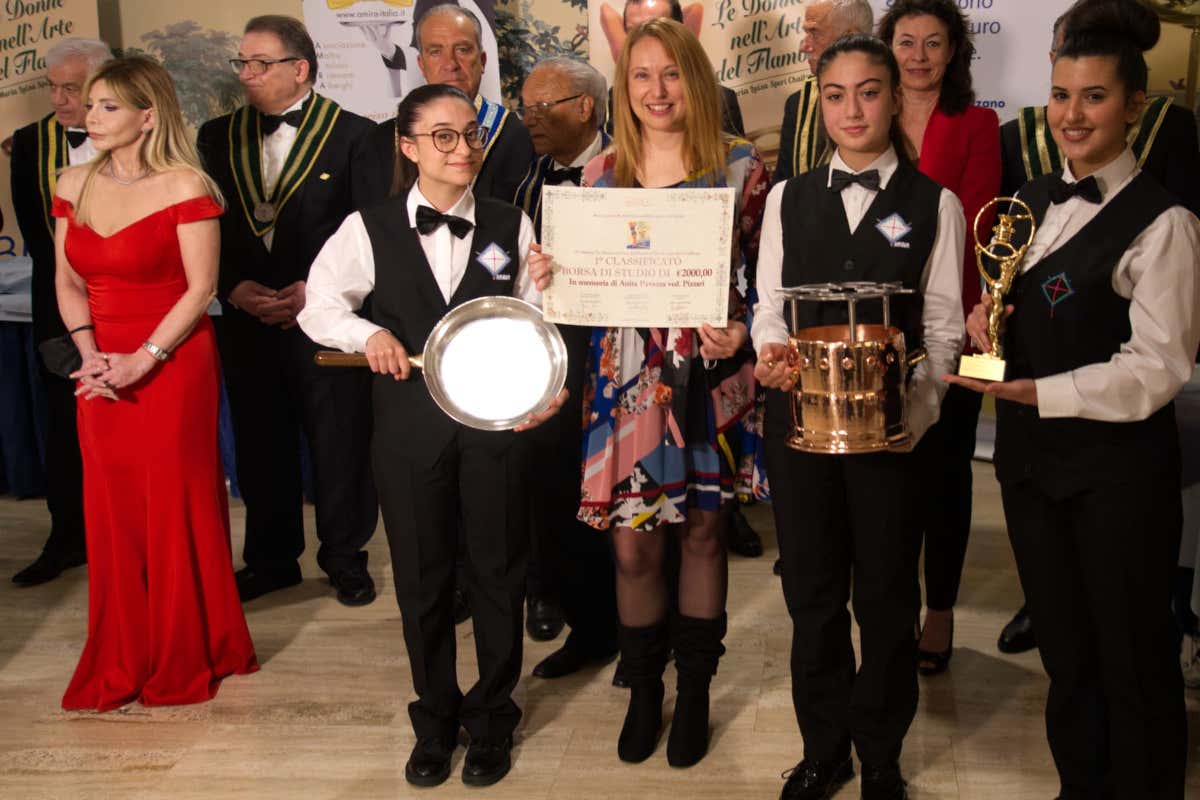 Le allieve si sono esibite in una prova che consisteva nella preparazione di un piatto di frutta preparato al flambè, l’abbinamento di un vino con relativo esame organolettico, e la preparazione di un centro tavola composto da frutta e verdure. Durante la serata di gala alla presenza di autorità e molti ospiti, le partecipanti alla gara si sono esibite alla preparazione delle crepes suzette preparate e flambate con l’amaro Quintessenza della distilleria Nonino.