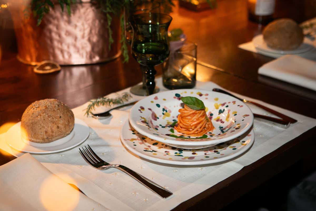Per una tavola in stile Issimo Marie-Louise Sciò ha creato con alcuni artigiani: