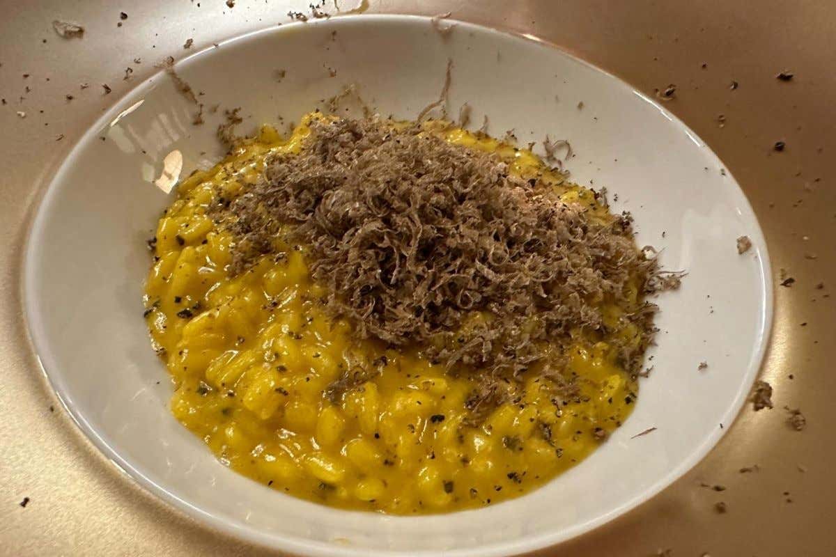 Quel risotto al Gorgonzola, tartufo pregiato e zafferano cucinato in sala