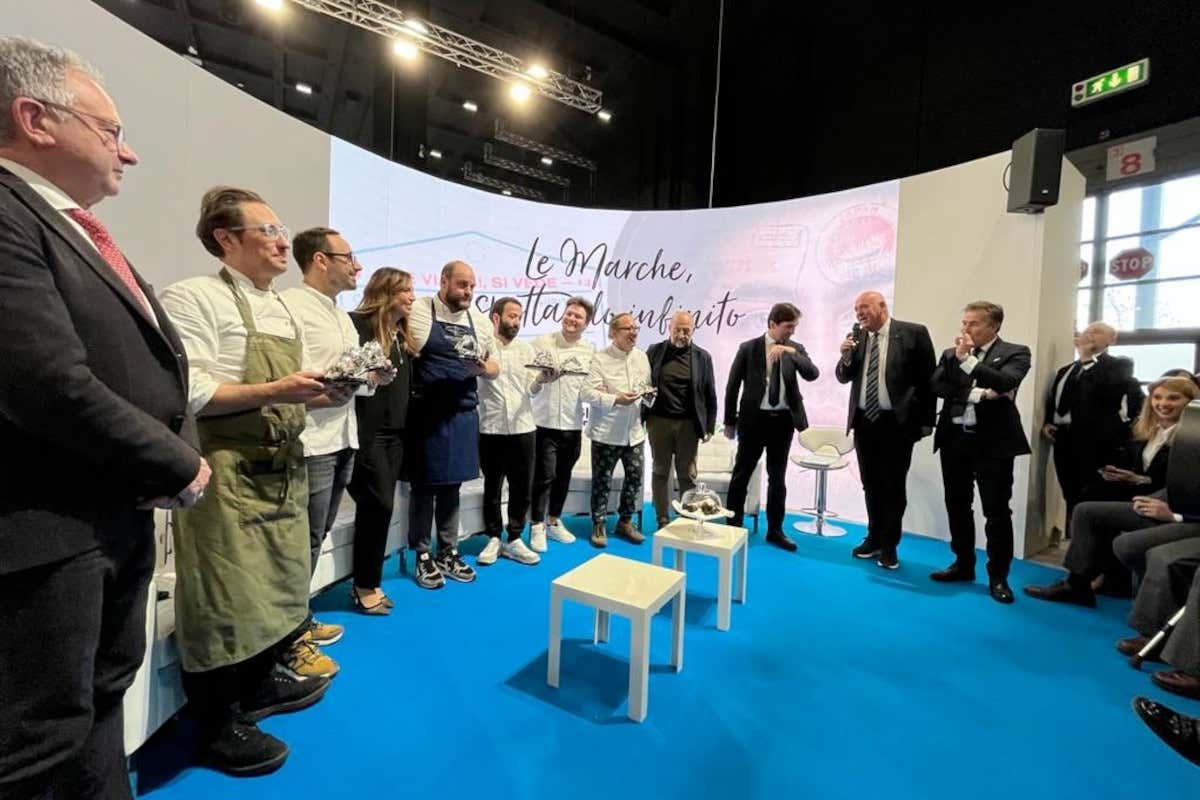 La Regione Marche, con il presidente Francesco Acquaroli, e Atim- Agenzia per il turismo e per l'Internazionalizzazione delle Marche, con il direttore Marco Bruschini, hanno avvolto gli ospiti della Bit-Borsa internazionale del turismo di Milano con i profumi, i sapori, le passioni e le emozioni della nobile terra marchigiana. Presente un "Firmamento Stellato" che ha preparato in diretta sei ricette griffate, nate dalla creatività di sei chef stella Michelin.