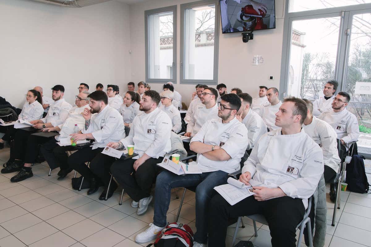 Dopo l’intervento di Zoia, il maestro Francesco Elmi ha introdotto il corso ricordando ai ragazzi: «Siamo qua per condividere. Solo con la condivisione si può evolvere, da soli non si cresce, si cresce in gruppo». Il programma ha quindi preso il via con la lezione a cura di Manuel Ferrari, miglior pasticcere da ristorazione del 2011 e Pastry Chef di Villa Serbelloni di Bellagio (Co), con «I lievitati e le armonie gustative», centrata sulle tecniche di scelta e valutazione delle materie prime, nella ricerca dell’armonia perfetta in un lievitato, e le tendenze della stagione 2023.