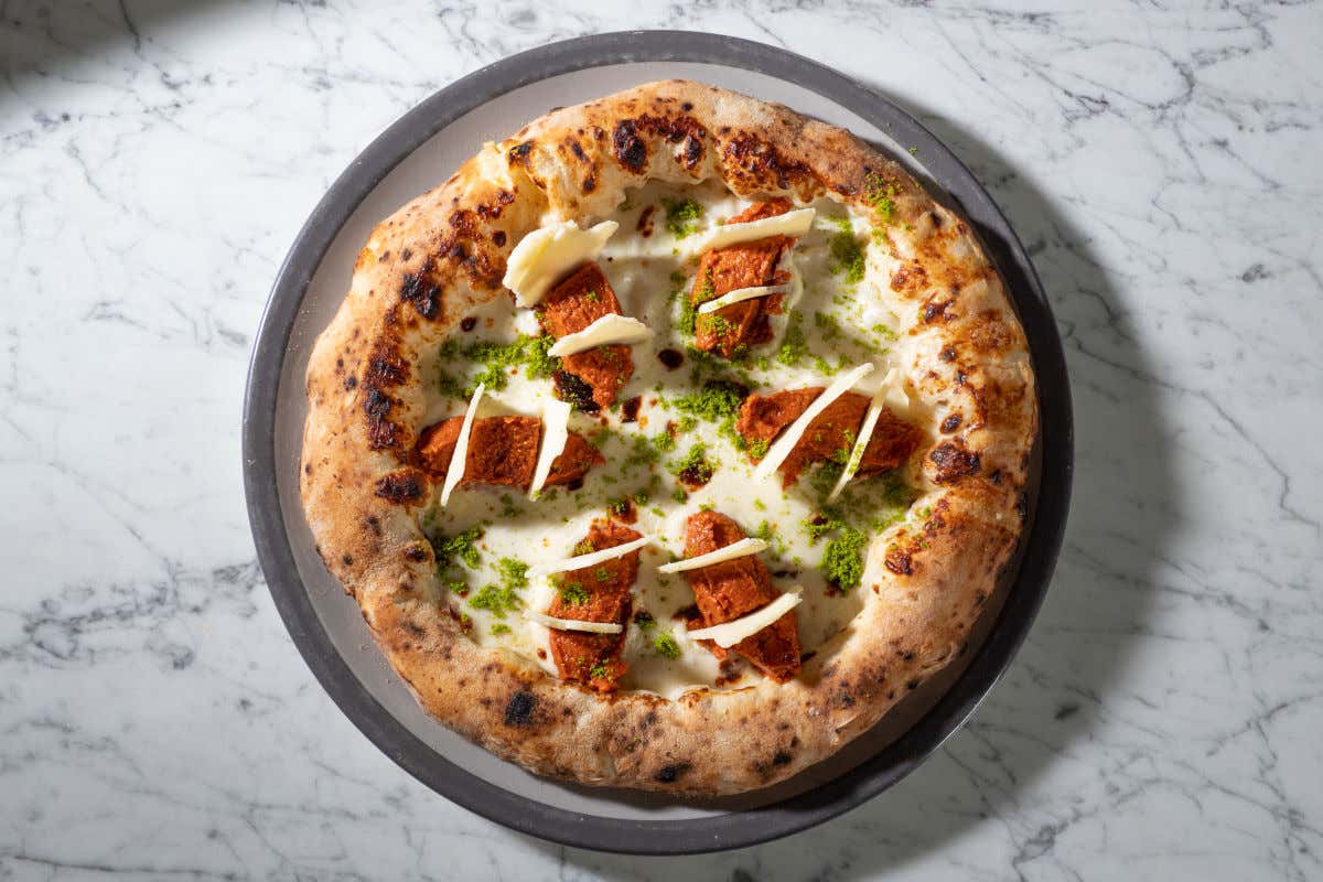 «Sì, io sovente al mattino mi alzo e penso ad una nuova pizza. Ma alzare l'asticella sul prodotto pizza, che è un cibo popolare e che è costituito da ingredienti basilari molto semplici, non è facile. Non è facile soprattutto se, ed è il mio caso, non si prescinde dall'obiettivo di offrire sempre la migliore qualità possibile. Insomma, l'estro creativo c'è ma va doverosamente dosato. Per adesso le novità sono la pizza dolce, la Gelsomina, con un succo di gelsi su una crema pasticciera e con dei cristalli di violette. E c'è la pizza Vulcanica, sapore deciso con ingredienti semplici, ma con tre momenti diversi di preparazione: prima della cottura, durante la cottura e dopo la cottura. C'è un grande pomodoro campano, un paté di olive caiazzane, foglioline di origano fresco e la treccia di bufala. La treccia la sfiletto, ma non la taglio. Nel forno ci va solo il disco e il paté di olive caiazzane. Treccia e pomodoro subentrano in uscita forno. E' una pizza fantastica!»