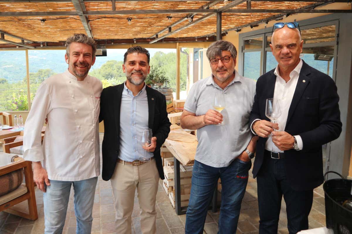 Ad accompagnare il pasto, Sciurbí - Praié - Granaccia Doc Riviera Ligure di Cervoclassico, Vignamare - Lupi - Spumante Extra Brut metodo Classico, Braje Sciac-trà - Lupi - Ormeasco di Pornassio Doc e Andalora - Praié - Spumante Brut metodo Martinotti. «Ottimi vini del territorio, fatti da piccoli produttori che lavorano però a un livello altissimo - ha sottolineato Derflingher. Conosco Giorgio da sempre, è una persona modesta e pacata, un grande lavoratore che ci ha fatto ancora una volta assaggiare piatti eccezionali. L'intero progetto che ha deciso di sposare è tanto ambizioso quanto bello».