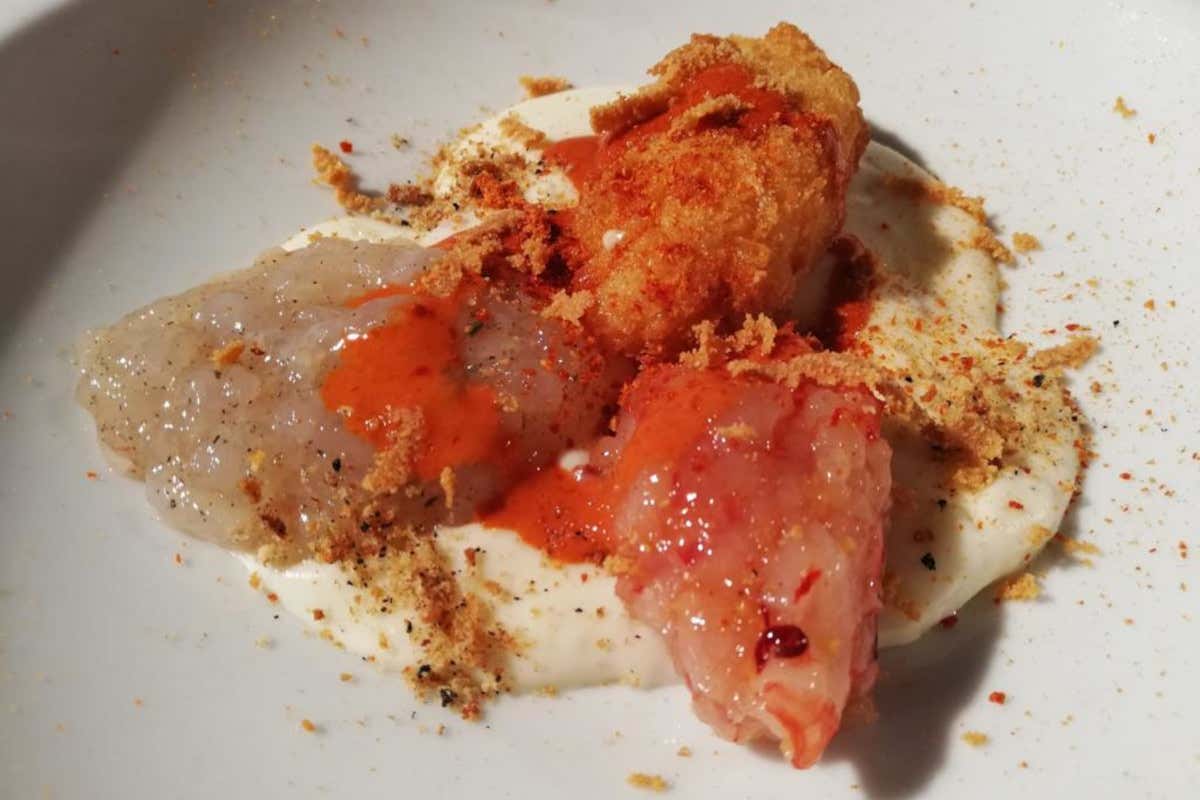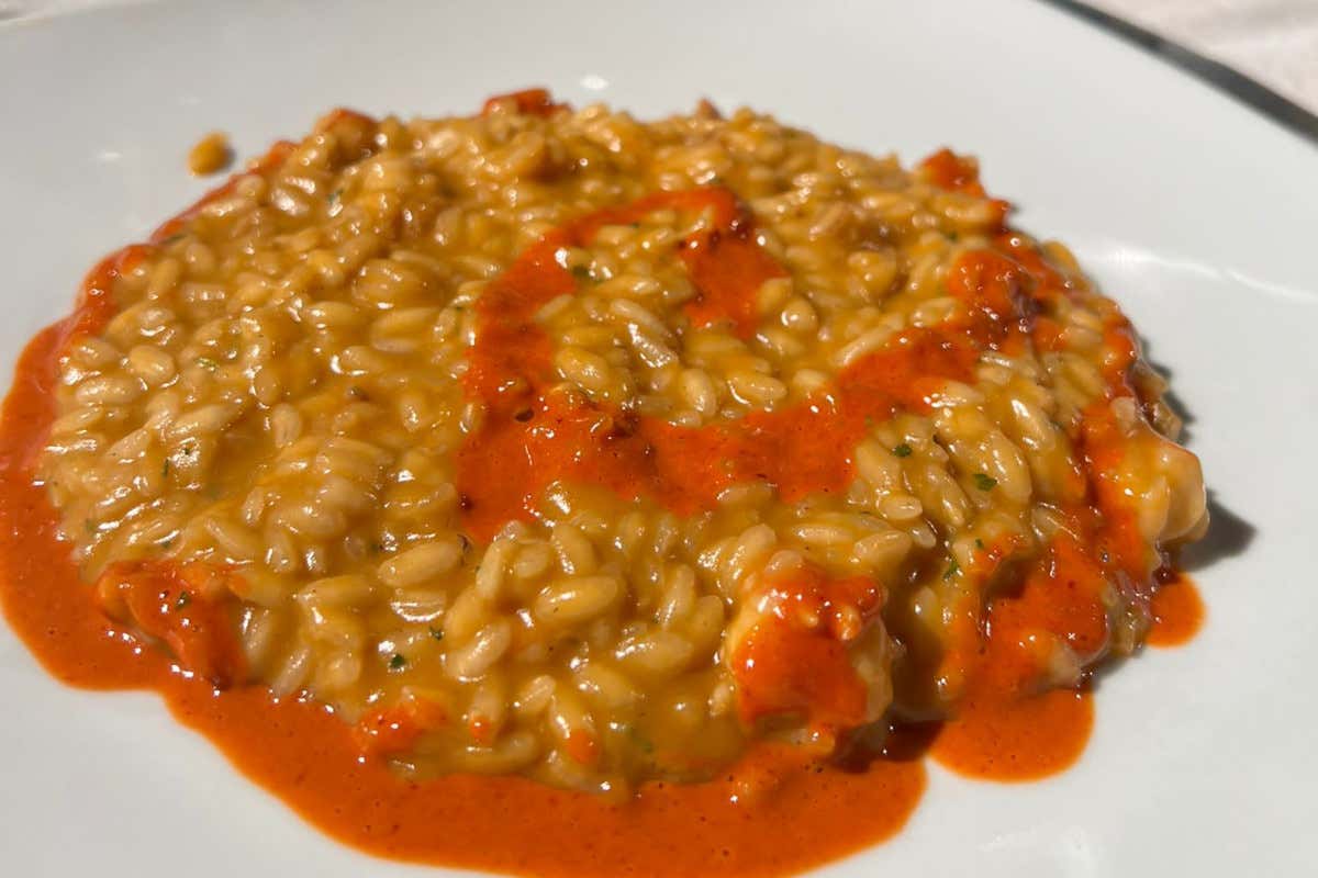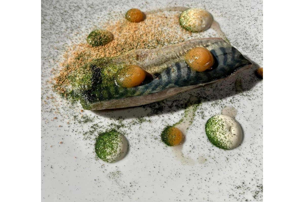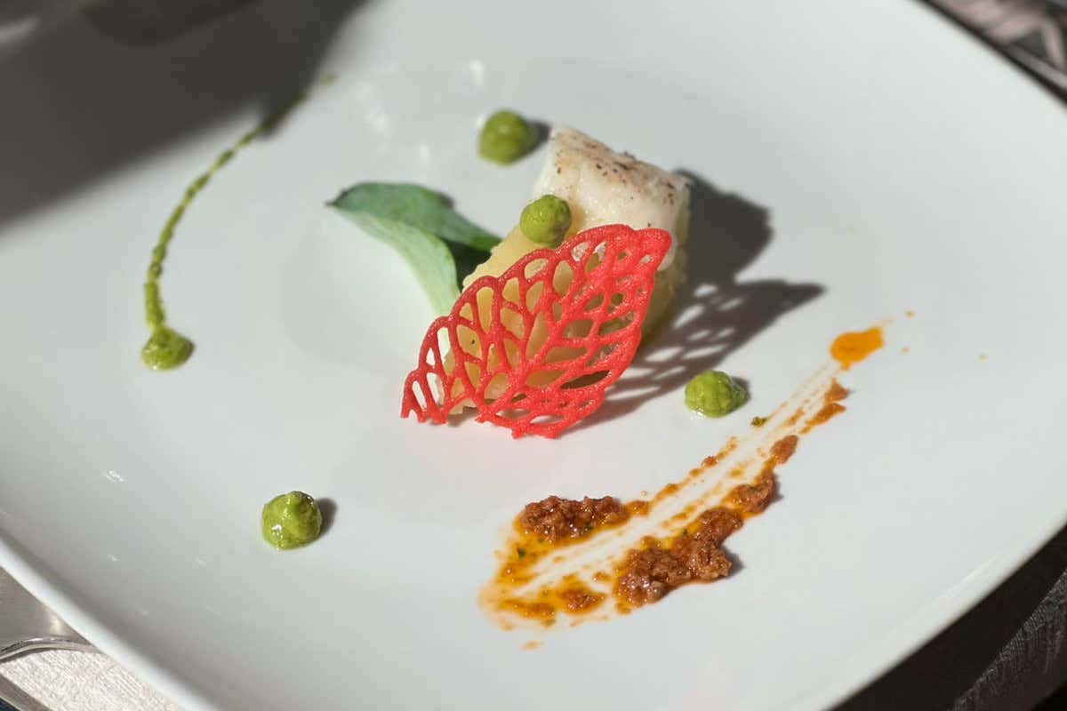 Nel menu, Baccalà sulla roccia: baccalà cotto a bassa temperatura su salsa pantesca. Tramonto di Mazara: Gambero rosso in tempura con pane panko e gambero rosso e bianco in doppia consistenza su salsa di vastella del Belice la sua bisque e polvere di Matarocco. Busiatina con doppia consistenza di nocciole dell’Etna e carciofi di Menfi. Risotto Regina Vittoria: riso Carnaroli con Gambero Rosso siciliano, Franciacorta, timo. Sgombro lardiato gourmet: sgombro cotto in olio cottura con polvere di origano e salsa di aglio dolce. Come dolce il Cannolo papillon.