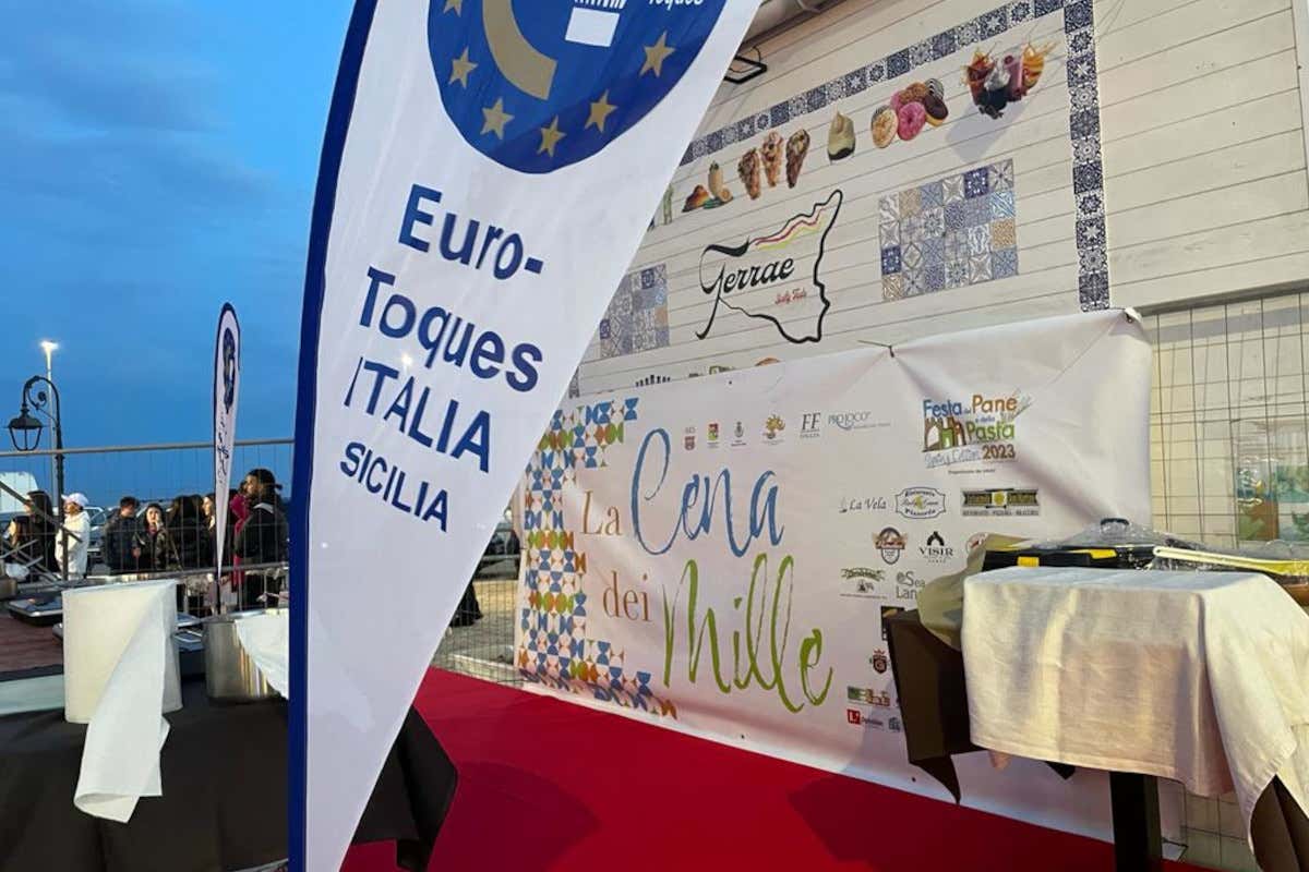 Mazara è, però, terra di grandi eccellenza culinarie e, sempre nell'ambito della Festa della Pasta e del Pane, è stata organizzata la Cena dei Mille, che ha visto protagonisti, tra gli altri, i cuochi di Euro-Toques. A capitanare la brigata il presidente dell'associazione europea dei cuochi Enrico Derflingher, insieme a Paolo Austero, Antonino Fratello (consigliere nazionale), Giuseppe Triolo, Natale Di Maria (delegato per la regione Sicilia), Giovanni Porretto (consigliere nazionale), Francesco Bonomo e Francesco Mauceri. I cuochi Euro-Toques hanno, prima, scaldato i motori con uno show-cooking per giornalisti e blogger, ma il momento clou è stata la bellissima cena. Sul Lungomare Mazzini è stata allestita una tavola di centinaia di metri, che ha ospitato mille commensali.