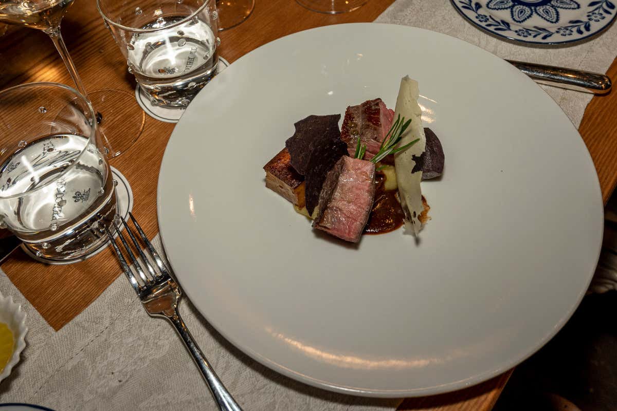 Rosatenero di Chianina al peposo, patate in varie consistenze e colori