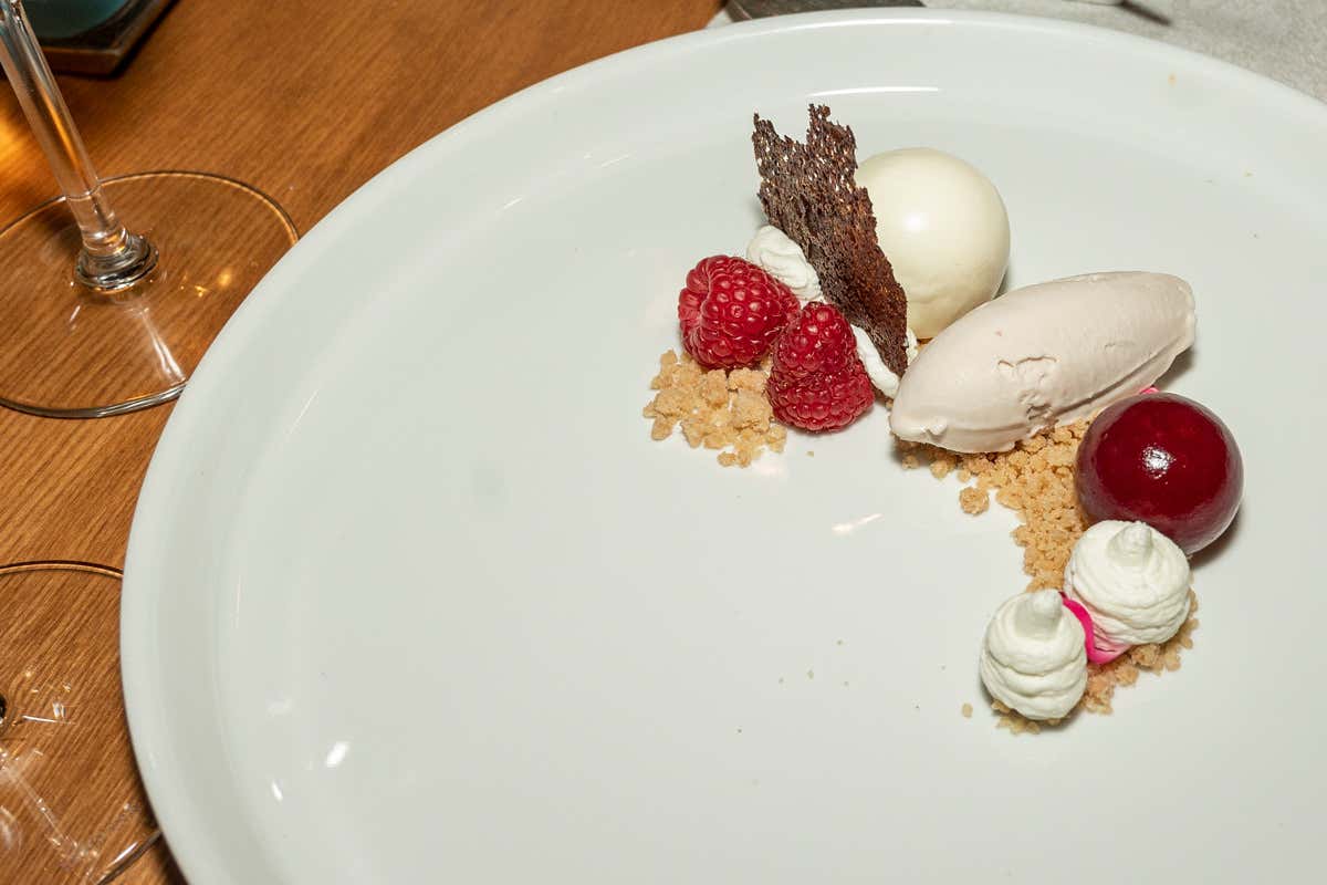 Il menu della serata: Fiori di zucca ripieni di melanzana, capperi e cioccolato bianco con burrata e menta a cura di Silvia Baracchi accompagnati da Champagne Blason Vert Brut - J.H. Quenardel; Risotto “Regina Vittoria” a cura di Enrico Derflingher accompagnato da Champagne Cuvée Blanc de Noirs - J.H. Quenardel; Rosatenero di Chianina al peposo, patate in varie consistenze e colori accompagnato da Ardito 2018 di Baracchi Winery e per chiudere “Crema di latte” lampone e gelato al cioccolato rosa di Marinella Paoloni, pastry chef de Il Falconiere, mentre nel bicchiere è stato versato il Vinsanto 2016 di Baracchi Winery.