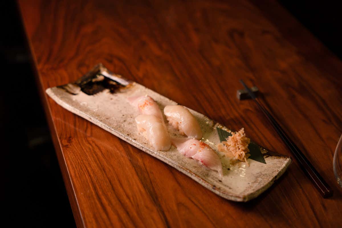 L'ospitante Wicky, cingalese di origine, di recente premiato con le “Tre bacchette” della Guida Gambero Rosso 2025, abbandonato il sogno di fare l'investigatore o il diplomatico inizia ben presto a frequentare le scuole giapponesi, ossia i luoghi ove si apprende l'arte nipponica in cucina. Scopertosi più giapponese dei giapponesi insiste, e dopo altri soggiorni in Brasile, Africa, Isola di Bali, Thailandia approda nella cosiddetta capitale morale, motivo per cui oggi ce lo ritroviamo qui a predicare il verbo sushi. Non quello degli altri, non il fusion il nippo-brasiliano il pedissequo lo scapigliato. Niente di tutto questo, lui inventa la sua wicuisine, che per ora risuona di vibrazioni mediterranee, domani chissà. «Qual è il tuo ingrediente fondamentale, oggi come oggi», questa la domanda introduttiva: «L'olio extravergine di oliva», risponde lui con un sorriso sornione, e tu non capisci se ti sta sfottendo oppure no.  Ma basta dar di gomito agli altri colleghi invitati alla serata per apprendere che è tutto vero, l'importante è non pensare di aver trovato l'approdo definitivo del funambolico cingalese.