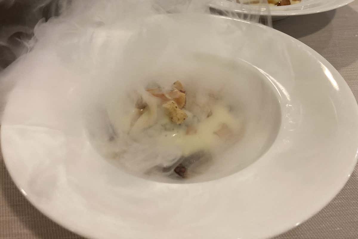 3. Moreno Emmi ha preparato il "polpo spadellato, spuma di patate e porri, chips di topinambur e teryaki al caffè".