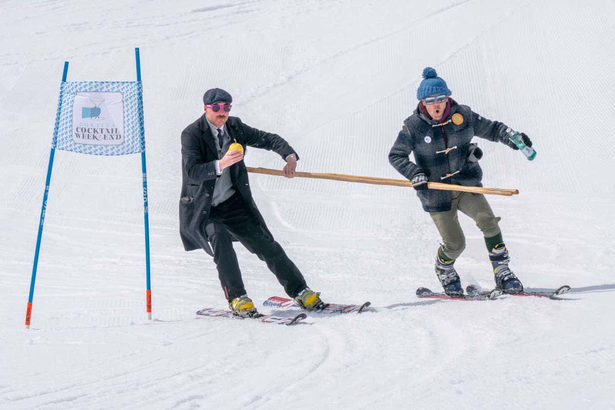 La Mixologys’ Cup è stata organizzata nella mattina di domenica 24 marzo. Una discesa con la coppa Martini in mano con il Martini by No.3 London Dry Gin, zest con i limoni di Acquapazza Cetara e le olive di Incuso. I partecipanti per l’occasione dovevano completare la gara senza saltare le porte, con il bicchiere pieno in mano e rovesciando il minor quantitativo di Martini realizzato ai blocchi di partenza da Martina Proietti. La parte finale della pista Socrepes per l’occasione era stata allestita e messa in sicurezza dai maestri di sci della Scuola Sci Snowdreamers Cortina con paletti da slalom gigante CCW24 come una vera gara di sci.