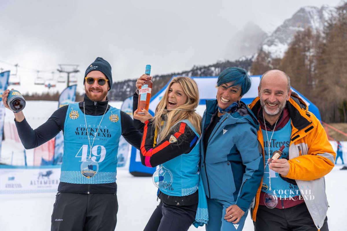 Una volta tagliato il traguardo i partecipanti hanno appoggiato il bicchiere su un tavolo e i maestri di sci in veste di giudici hanno pesato i bicchieri decretando i vincitori. A fondo pista, coordinate da Antonio Ferrara Bar Manager di The Bar, Aman Venice di Venezia, le postazioni bar #CCW24 di Altamura Distilleries, Amante 1530, Campari Group, Colesel, Nonino, Vov, che hanno proposto ognuna un Signature cocktail dedicato alla gara.