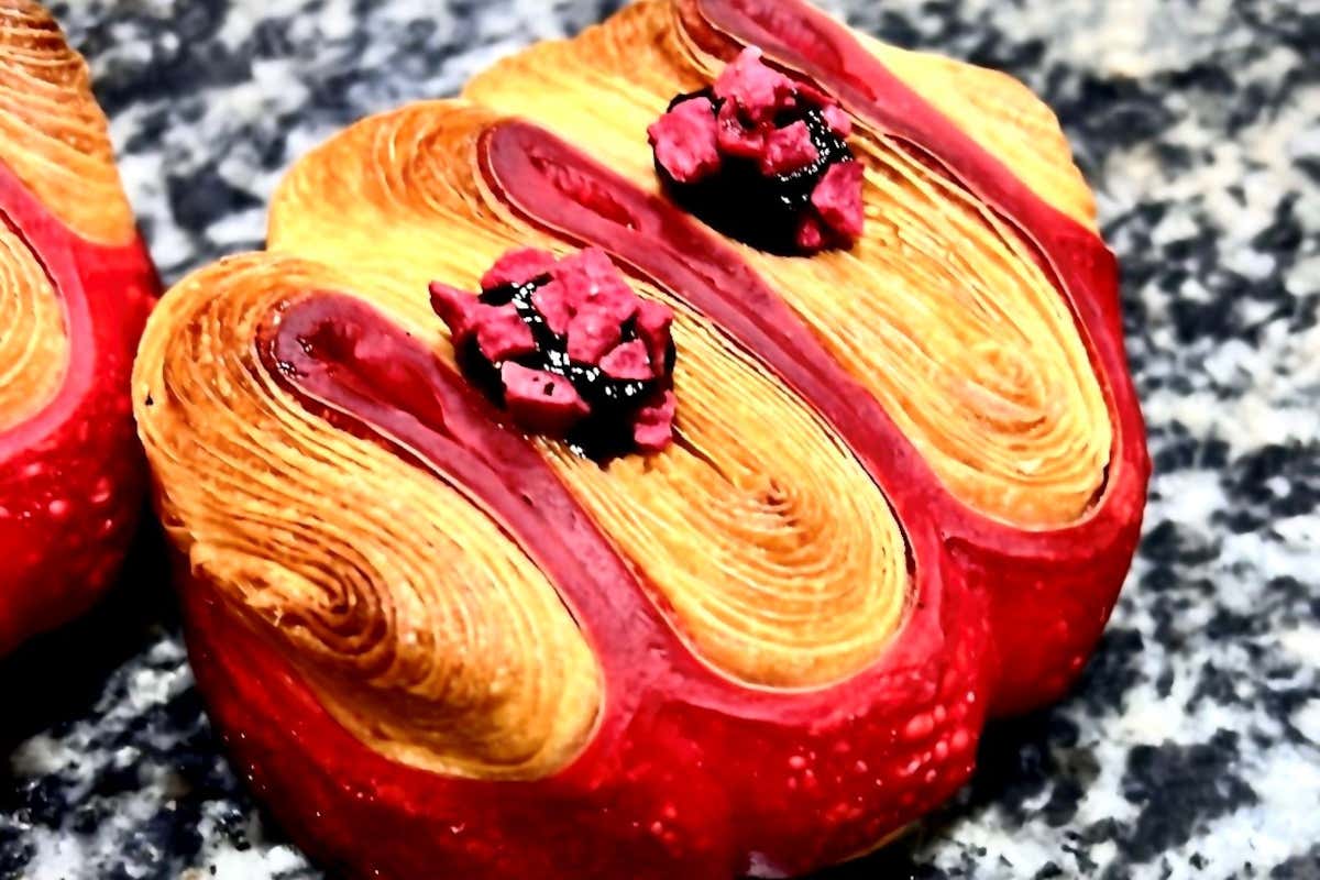 La brioche “No violenza” non poteva che essere caratterizzata dal colore rosso, che identifica proprio la lotta contro la violenza di genere. Così, Miranti ha ideato una brioche che accanto al colore naturale abbia proprio uno strato di pasta rossa, realizzata con colorante alimentare e lamponi che, a serpentina, si intreccia con il classico impasto alla francese che realizza da Orsucci.