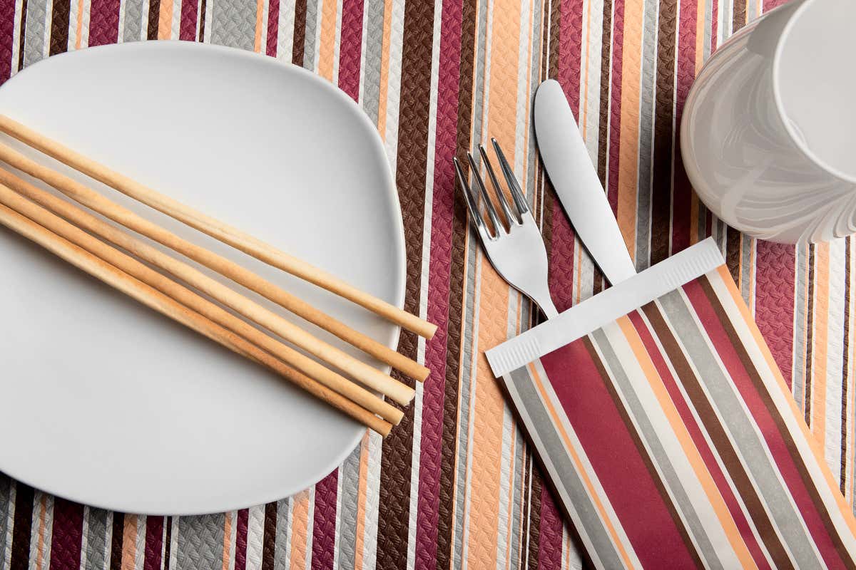 Grazie alla varietà di formati e decorazioni, la collezione Tissue & Co consente di adattare la mise en place alle diverse occasioni: una colazione informale, un pranzo veloce, una pausa caffè, un aperitivo o una cena conviviale. Il coordinato composto da tovaglietta e busta portaposate facilita la preparazione dei tavoli, riducendo i tempi di allestimento tra un turno e l’altro.