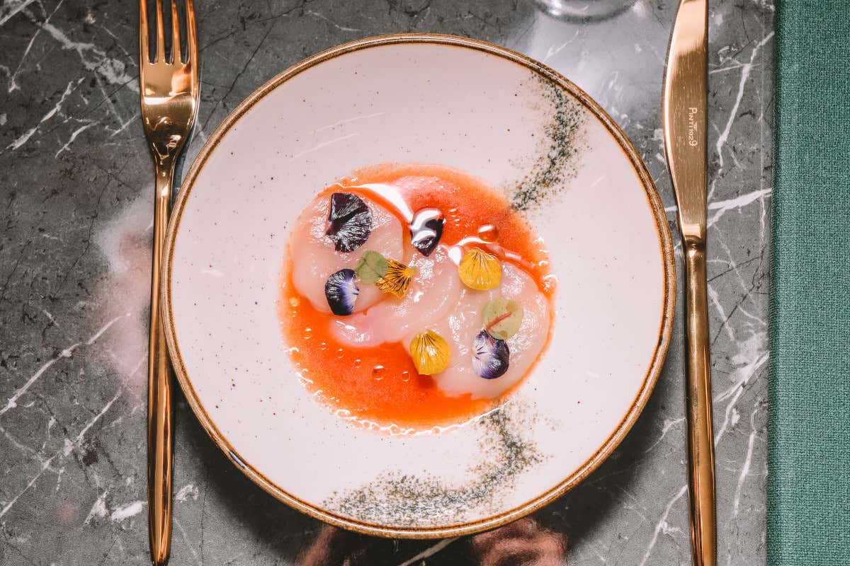Non manca un omaggio allo chef Valerio Braschi con il “Glacier 51 cbt e crema di topinambur”, pesce delicato e dalla carne candida, abbinato a un fondo di carne e a una crema di topinambur per un gioco di contrasti e illusioni sensoriali. Tra i piatti più rappresentativi del menu c'è poi il “Petto di piccione cbt con salsa ai mirtilli”, preparato a bassa temperatura per esaltarne la morbidezza e accompagnato da patate cotte in forno con burro ed erbe aromatiche. Questo piatto, come racconta la stessa chef, è stato ideato per il menu della finale di Masterchef Italia e rappresenta una parte importante della sua storia personale. Il percorso degustazione si conclude con un pre-dessert a base di gelato al bergamotto e pepe di Sichuan, pensato per donare freschezza e vivacità alla bocca e preparare al meglio il palato per il dolce finale. A chiudere il viaggio, infatti, è un dessert composto da una crema diplomatica alla vaniglia, frutti di bosco in omaggio alla Trentino di Kassandra e un crumble di mandorle leggermente salato per dare croccantezza e contrasto.