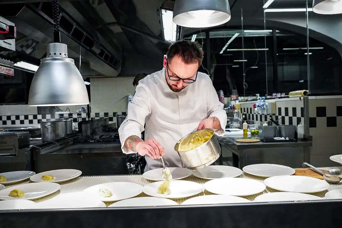 Classe 1986, Federico Sgorbini ha percorso la prima tappa della sua storia professionale in Oltrepò Pavese al Ristorante Le Robinie di Montescano (Pv) di fianco a Enrico Bartolini. Tra i suoi maestri anche Andrea Ribaldone, con cui ha collaborato al Ristorante La Fermata di Spinetta Marengo (Al), al Ristorante I Due Buoi di Alessandria e al Ristorante Lino a Pavia, dove nel 2022 ha ottenuto la stella Michelin A scandire il suo percorso professionale anche diverse esperienze in ristoranti europei di alto profilo come Le Taillevent di Parigi e The Ledbury di Londra.