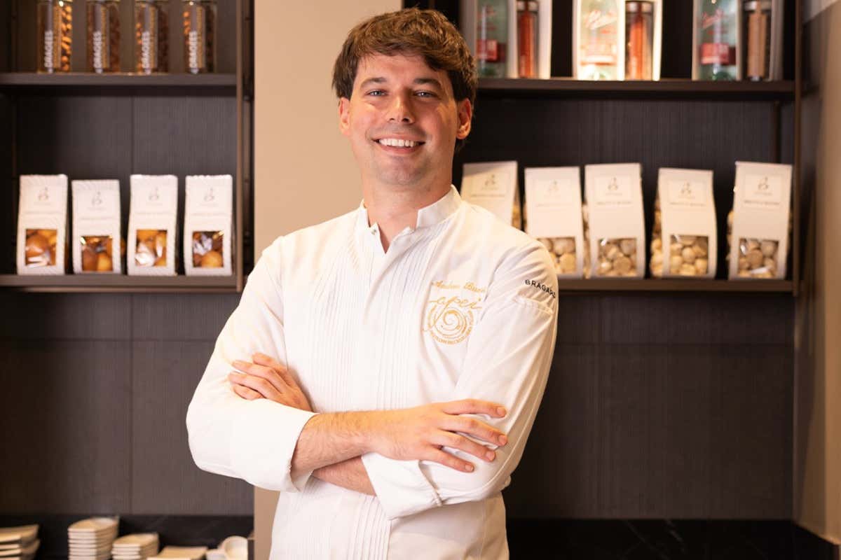 Andrea Buosi ha concluso l’istituto alberghiero a Varese circa dieci anni fa, con una formazione inizialmente orientata verso la cucina salata. I primi stage lo portano tra una panetteria a New York e l’esperienza da Vittorio, tre stelle Michelin a Brusaporto (Bg). «Stavo seguendo un percorso da cuoco, il salato era quello che mi stimolava di più», racconta.