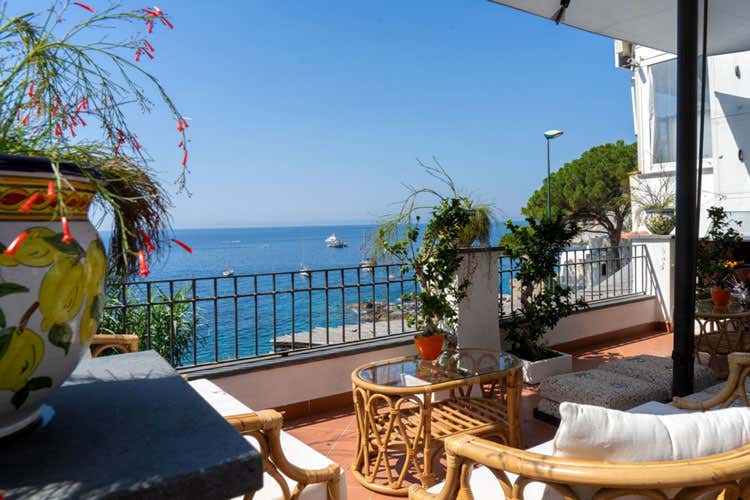 Terrazza con vista sul mare di Marina Piccola per gradito aperitivo. Sala ampia e luminosa, bene arredata, per quaranta commensali. La saggezza di un menu non sterminato, la competenza poco esibita ma così tanto sostanziosa, atta a proporre una carta dei vini di assoluta pregevolezza.
