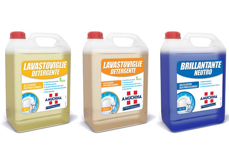 profonda eliminazione dei residui di grasso e unto, assicurando igiene e pulizia professionali in presenza di acque dolci o a media ed elevata durezza.