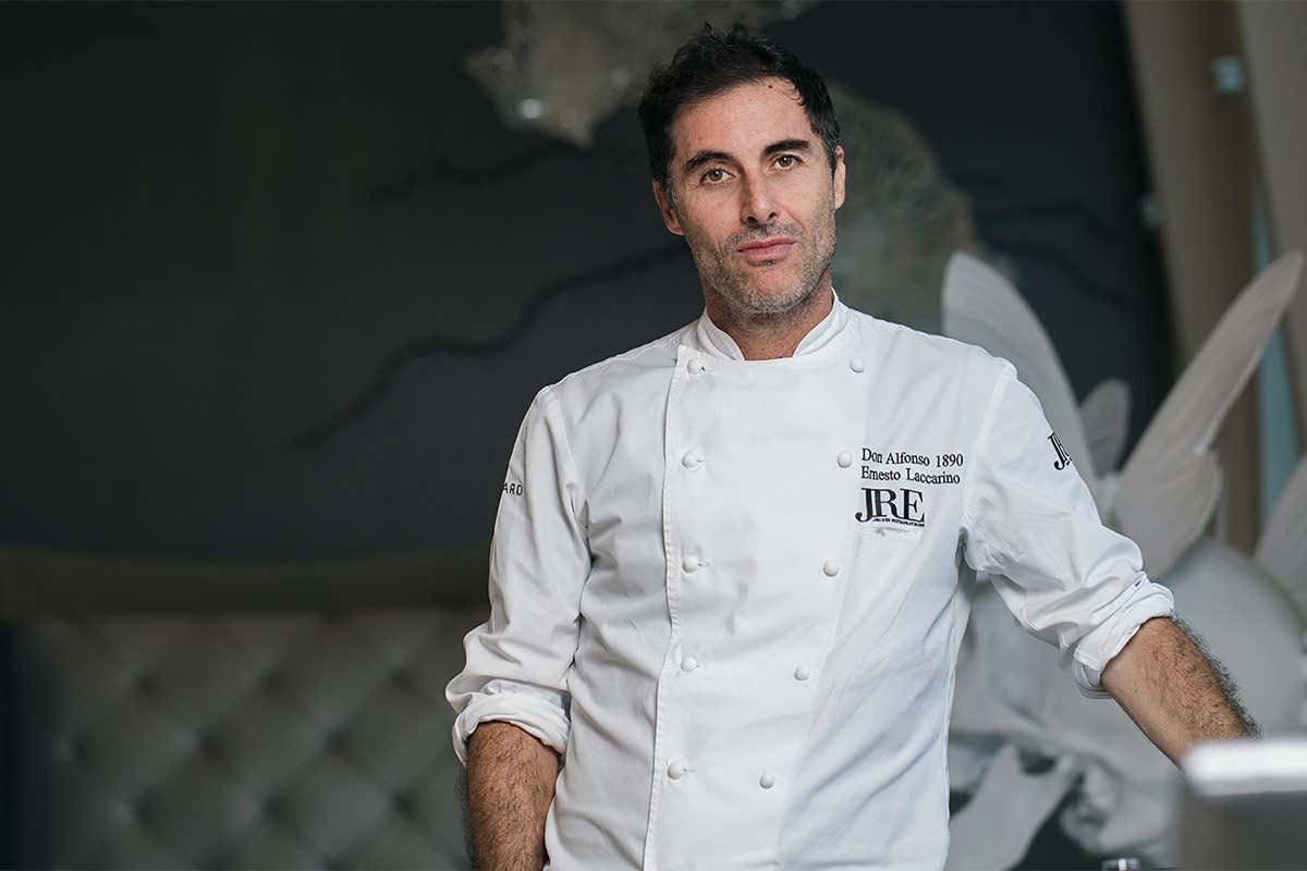 Nato nel 1970, socio Euro-Toques Italia, Ernesto Iaccarino ha scelto un percorso personale e originale. Secondogenito (il fratello Mario è maître), si è laureato in Economia e Commercio alla Bocconi di Milano nel 1999, ma il richiamo del territorio lo ha ricondotto a Sant’Agata sui due Golfi. Dietro la cucina a vista del Ristorante Don Alfonso 1890, splendida nel suo essere quasi interamente maiolicata, esegue oggi i precetti secolari degli Iaccarino: ingredienti ineccepibili. E poi ci sono estro e inventiva sia nelle moderne interpretazioni dei classici regionali come paccheri e bucatini, sia nelle sorprese improvvise (Cernia alla vaniglia) che fanno della sua tavola uno dei luoghi da non perdere in un tour gastronomico nell’Italia centromeridionale.