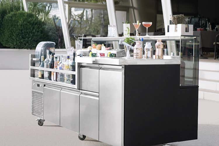 Una stazione cocktail professionale e performante, pensata per l’outdoor e ideale anche per l’indoor. Assolve le più specifiche esigenze dei barman nella preparazione e presentazione dei drink.