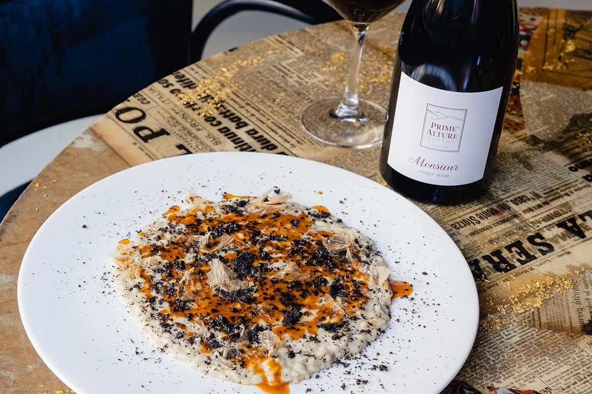 Abbinamento del risotto di Tommaso Arrigoni con il Pinot Nero Monsieur Prime Alture