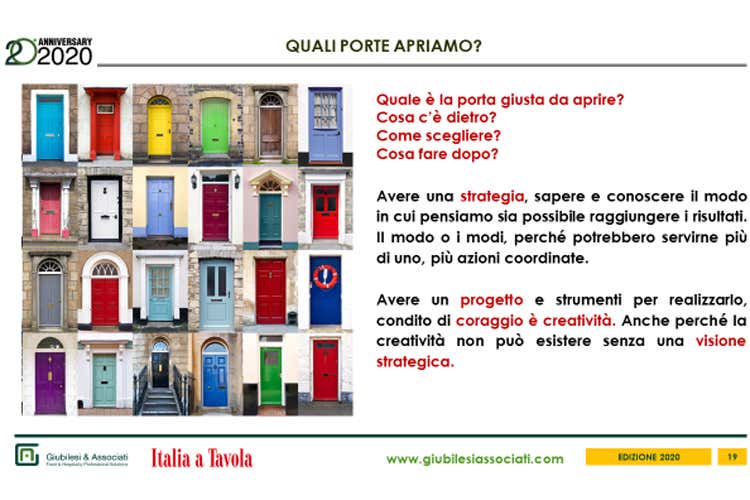 Tornare agli albori vuol dire porsi le domande più semplici per capire quale strada sia più giusto prendere. Certo, l’esperienza fatta fino all’epoca pre-covid conta, ma il ristoratore è comunque chiamato a chiedersi quale sia la porta giusta da aprire, quale percorso si apre davanti ai propri occhi e come affrntarlo. La parola d’ordine è sempre una sola: strategia. Perseguire una strategia però presuppone di avere due qualità imprescindibili: coraggio e creatività.