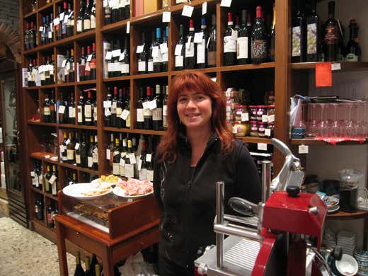 Nadia Descalzi (nella foto) ha seguito il corso di sommelier per meglio dedicarsi alla selezione dei vini e ha scelto questo piccolo spazio che le permette di seguire direttamente l’attività. Il locale è delizioso, come i cibi e i vini, frutto di un impegno che garantisce meritata notorietà. La vineria è in un angolo della piazza del borgo; mattoni e pietre danno calore e rendono rustico l’ambiente, le bottiglie sono ben in mostra alle pareti, sul fondo si scorge un angolo più raccolto; davvero notevole la carta dei vini con 600 etichette tra i bianchi e i rossi; i vini si degustano con appropriate e squisite specialità.