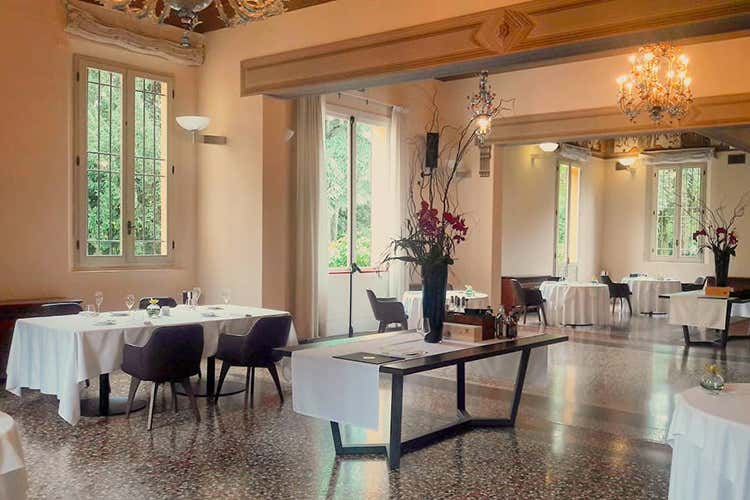 In attesa di vedersela confermare (e la merita tutta) anche nella sua nuova creatura, qui Agostino propone un connubio fra le sue due anime, quella campana e quella emiliana. Una decina di tavoli, ospitati sotto le splendide grottesche del salone d’ingresso della nobile dimora, con arredamento rispettoso dell’importanza della sala.