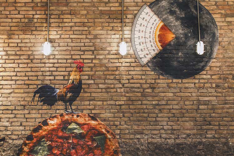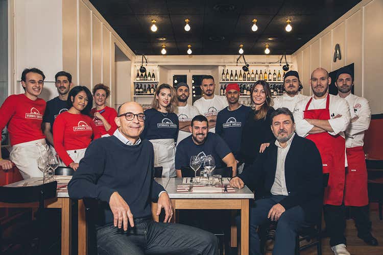 Ha trovato tutti d'accordo il progetto di realizzare quella che può essere definita una pizzeria di quartiere, dove ci si sente a casa e dove si torna volentieri. Divertente, da sfogliare come un libro illustrato è il menu dove le singole voci si alternano a immagini pubblicitarie degli anni Cinquanta così come alle pareti sono poster art e fumetti d'epoca. Un biliardino è a disposizione al piano di sotto. Le pizze, classiche e gastronomiche, sono fatte con farine bianche e in piccola percentuale integrali, olio, sale, acqua e una quantità minima di lievito di birra.