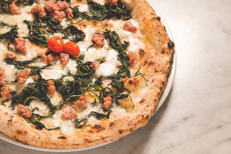 L'impasto riposa a lungo a temperatura naturale o controllata partendo da 48 ore per arrivare al giusto punto di maturazione e a un’idratazione al 62%. Il risultato è una pizza che concilia la croccantezza della romana con la sofficità della napoletana, mantenendone il leggero cornicione. Di rigore pomodoro campano e ingredienti stagionali. Tra le più gettonate, la Roma, con fior di latte, pesto di rughetta e ricotta, la Calabrese, con provola affumicata, patate e ‘nduja, la Nord-Est con Asiago giovane, radicchio trevigiano e speck altoatesino.