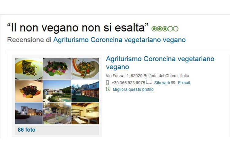 Un’altra nota dolente si aggiunge al capitolo TripAdvisor. La segnalazione del malfunzionamento del portale di recensioni online arriva da Macerata, per la precisione dall’Agriturismo Coroncina di Belforte del Chienti (Mc), noto in zona per proporre piatti vegetariani e vegani. I titolari Melania e Carlo, dopo avere letto una recensione che oltre a screditare il locale riportava anche la descrizione di un piatto inesistente, hanno segnalato il commento a TripAdvisor.