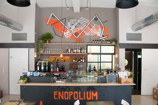 La carta dei vini comprende per scelta etichette italiane di piccoli produttori selezionati, comprese molte bio. Non mancano centrifugati e smoothies per chi insegue lo stile di vita sano. Servizio attento e conto senza sorprese. Enopolium è aperto per le sue insolite degustazioni dalle 12,30 fino alle 15,30. Alle 18 riapre per l'aperitivo per chiudere all'1 di notte. Sabato solo a cena.